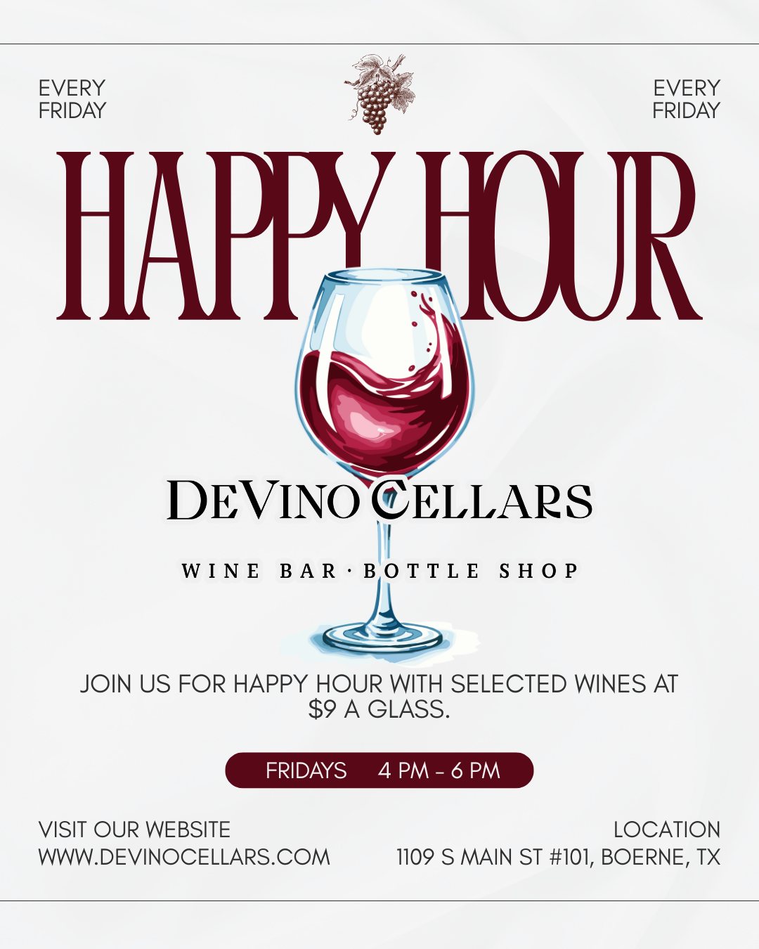 Happy Hour is now a weekly tradition at DeVino Cellars from 4 PM to 6 PM. Come sip, unwind, and let the weekend begin one glass at a time. ![]()